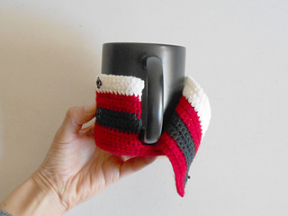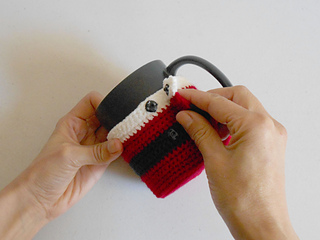 The Oriens Mug Cozy - Christmas Version is perfect for Winter season, to dress up your home or make beautiful gifts. It is made with simple stitches and in only one piece, to practice back and forth, and in the round crochet and basic increasing technique.