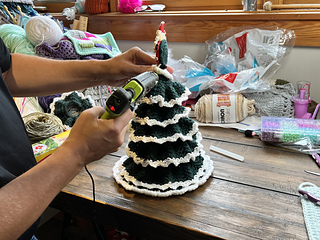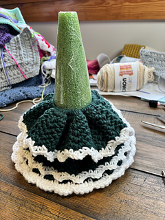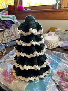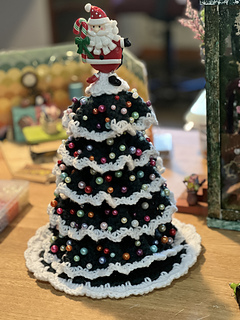 Superb table topper for a Crochet Christmas Tree in miniature format. Build up your tree on a foam core. Decorate the tree however you see fit in your own holiday living decor.