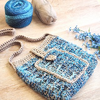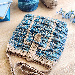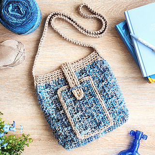 The Chroma Crossbody Bag is a hands-free purse with lots of color and texture! Self-striping yarn is combined with sturdy cotton yarn for a strong and beautiful fabric, and the raised line texture is created with post stitches. The unlined bag is finished with a front pocket, a tab closure and a crossbody strap. This is an intermediate project.