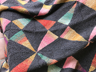 One glorious color blends into the next in this dramatic blanket of 4-point stars on a dark background. The beautiful long color changes of Noro Silk Garden will do all the color work for you! This garter stitch blanket will keep you warm, and make an attractive addition to your home.
