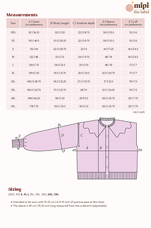 Choose a size with 15-25 cm | 6-9.75 inch of positive ease at the chest. Sample is size XS worn with 22 cm | 8.75 inch.
