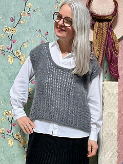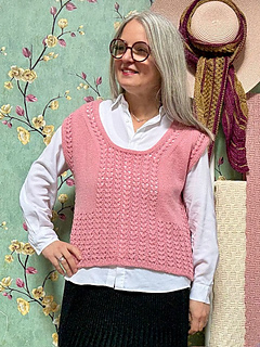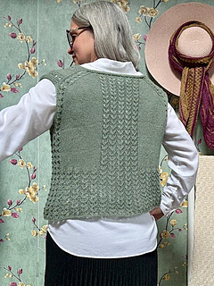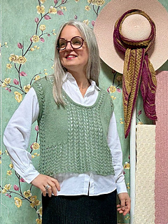 Clara is a top-down vest worked from the top down with drop shoulders. Elegant and modern, it’s a perfect garment over trousers or jeans, and becomes stunning over a dress or an unstructured skirt, making the look unique and personalized. With a relaxed fit on the body, it’s easily modifiable according to taste and body proportions. A lace pattern decorates the shoulder point and construction lines, as well as the center back and front, giving movement and dimension to a unique garment with personality. The high finishing border, worked in the same lace pattern, completes the piece. Try on the garment as you work and don’t hesitate to make those customizations that will make it the perfect piece you love to wear and that makes you feel good.