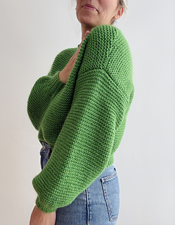 Knitting Pattern for an Oversize-Sweater in Garter Stitch with Wide Balloon Sleeves and a Cropped Fit in Sizes XS | S | M (L | XL | 2XL) 3XL | 4XL | 5XL.