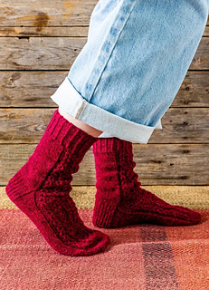 Clematis-sukkien etupuolta koristaa kärhö, yksi puutarhan kauneimmista köynnöskukista. Sukat neulotaan varresta varpaisiin ja niissä on käytetty suosittua japanilaista pitsikuviota.