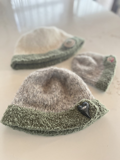 Aiguilles : 5 mm (US 8) circulaire 40 cm (16’’) et 1 jeu de double pointe ou un cable plus long pour diminuer avec la technique du magic loop.