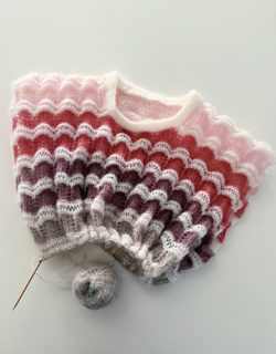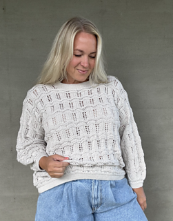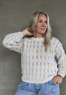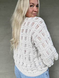 Cloud Dancer is a top-down sweater where classic lace meets a modern, understated style. With this knitting pattern, you can make the sweater either with long or short sleeves. Thanks to two material options, the design can easily be adapted into a light and airy mohair version or a classic lace sweater using DK-weight yarn.
