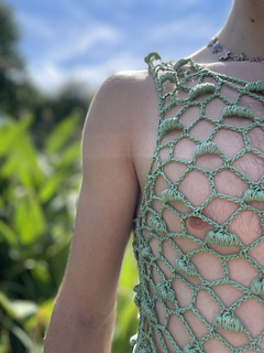 Worked in two flat panels in rows then seamed at shoulders and along sides