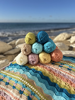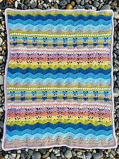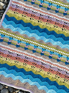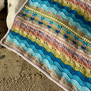 A beautiful blanket which can easily be adjusted in size to make a small baby / lap blanket or a much larger sized blanket. Rows of stitches inspired by waves and shells make this the perfect blanket for a coastal retreat… ☺