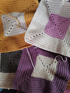 Sizing: This blanket is written in one size. If you would like to alter the measurements of the blanket, you can do so by working fewer or additional rounds to each of your squares, or by working additional or fewer squares than worked in this sample.