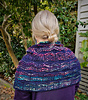This crocheted moebius cowl/shawl uses a 4 ply yarn paired with a super chunky yarn to create a textured bubbly effect. It is soft and light to wear and can be worn as a chunky cowl or across the shoulders as a warm shawl like wrap.