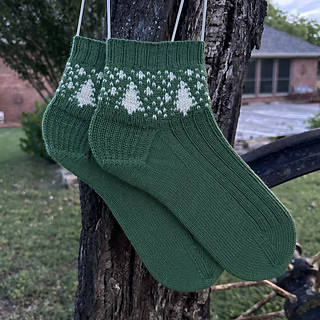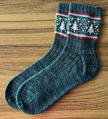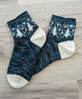 I always dreamed about designing a pair of socks in a perfect forest green with white contrast of trees and snowflakes. Perfect to wear all winter long these socks will definitely be a pleasure to knit!