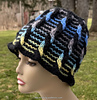 The Colorful Cables Bucket Hat matches the Colorful Cables Scarf pattern. It uses two contrasting yarns and slipped stitches to form the cable design. One yarn can be self-striping while the other is a solid color. You change yarns every two rows, so the color shifts happen without intarsia or complex methods. The hat is worked in-the-round and seamless.