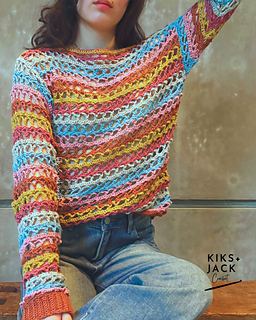 The Calista Colorful Crochet Mesh Top is a lightweight, airy sweater perfect for spring and summer days. Designed for both beginners and experienced crocheters, this playful mesh top combines multiple bright colors (or a solid hue, if you prefer) with a soft cotton-bamboo yarn that drapes beautifully. With its relaxed silhouette, breathable mesh stitch, and cheerful colors, The Calista Colorful Crochet Mesh Top is a joyful project you will love to make and wear. This pattern is “made to measure”, size inclusive and the full instructions are posted for you to view for free.