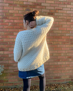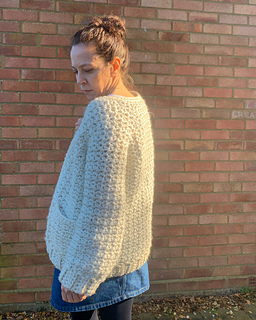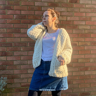 The cardigan pattern is written in 7 sizes from XS - 3XL in (finished bust 98cm-159cm). It is an oversized design with about 20cm / 8in of positive ease in the body, so if you want something more fitted you could size down. The pattern includes a table and schematic showing approximate measurements of the finished cardigan to help you choose your size. Guidance is given throughout for making simple adjustments.