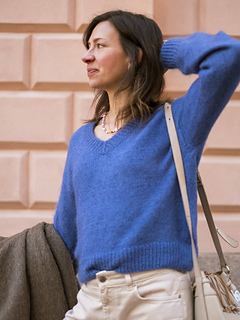 The Comfort Zone Sweater combines effortless elegance with a big dose of hygge for the ultimate go-to piece. The design is relaxed and oversized for a Scandi chic feel while staying safely in your comfort zone. The sweater is worked top down seamlessly so you can choose to work the body extra long for a modern and comforting silhouette, or regular / cropped for a more classic fit. The Comfort Zone Sweater has a dropped shoulder and features a flattering V-neck collar that is worked in rib to double height and folded at the end.