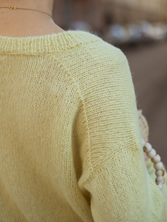 The Comfort Zone Sweater is worked by combining one strand of lace weight silk mohair yarn together with one strand of fingering weight yarn, or by using one single strand of sport / DK weight yarn.