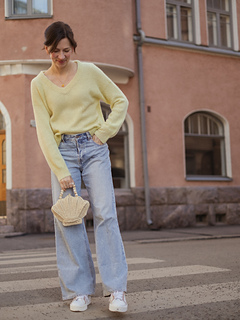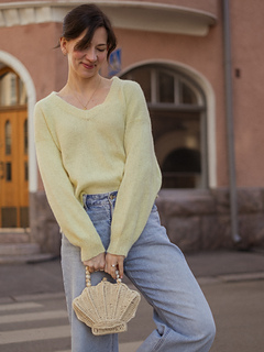 Sample knit in size S, Kika has a bust of approx. 87 cm / 34.25”.