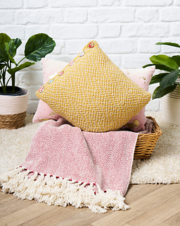 Anniken Allis has used a two-colour zigzag mosaic pattern for this elegant cushion cover design. It’s knitted in two shades of Cascade’s 220 Superwash, a DK-weight wool that comes in a huge choice of colours and is easy to care for, making it ideal for homeware projects.
