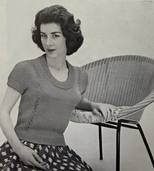 Delicate feather-knit panels highlight the front and back of this blouse designed for the girl who likes to be well-dressed and look feminine while doing a busy day’s work