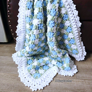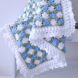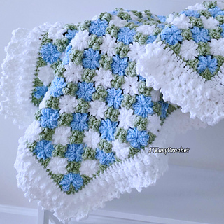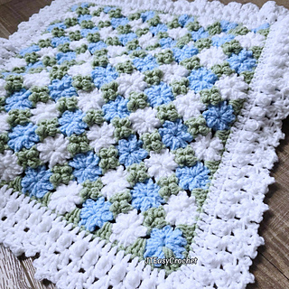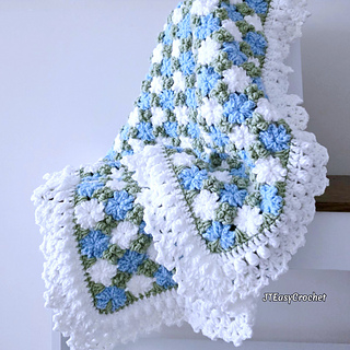 Crochet Pattern & Video, Cornflower Baby Blanket Throw is a beautiful color combo of sky blue, pale green and white, will surely be a textural focal point in any room ranging from farmhouse to modern bohemian style.
