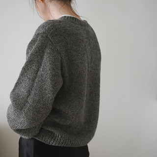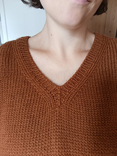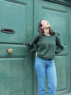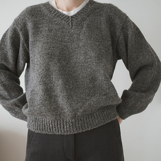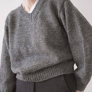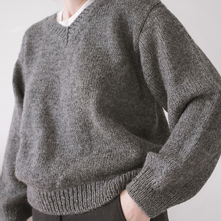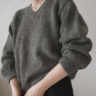The sweater is worked from top to bottom. The shoulders are created using short rows to provide a more comfortable fit. First, the back is worked flat, with some increases to shape the armhole. The front is then worked with increases to form the V-neck.