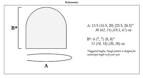 13.5 (16.5, 20) (23.5, 26.5)“ / 30 (42, 51) (59.5, 67)cm circumference (between 2-5.5” / 5-14cm negative ease)
