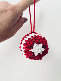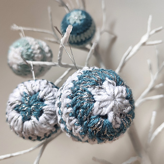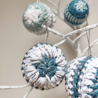 For this project, I held Durable Cosy Fine together with Durable Starlux , so it’s a double stranded project. I love this pairing of warmth and shimmer. The result is a bauble that feels soft to the touch, yet catches the light in the loveliest way. I used a 4.5 mm crochet hook and 6 cm styrofoam balls as the base, giving the finished pieces a neat and professional shape.