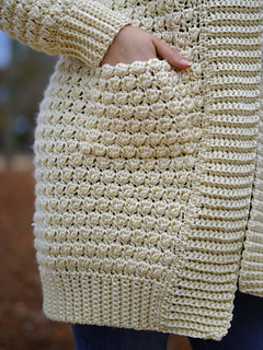 Pattern is Easy to read and Simple to make. Pattern is worked top down (NO SEWING). You connect the back & front panels to create the arm holes & the body. You then build the body length, followed by the sleeves, & collar. You have the option to add invisible pockets as well. Pattern includes photo tutorials & a stitch video tutorial to help you ease right through this Beauty! Pattern also comes with extra instructions to customize this piece to fit your preference. This design is meant to be an oversized cardigan to keep you oh so cozy warm.