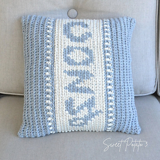 The pillow cover pattern includes material list, gauge check, stitch tutorials (many include video links), graphs, a written “cheat sheet” of the graph and an enlarged graph for easier viewing (just print and tape together).