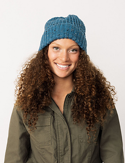 Beanie is worked in the round, bottom up, with a fold-up brim.