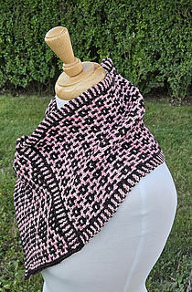 This cowl was inspired by the pattern that accompanied the mosaic Skill Builder Box from SWEET PAPRIKA DESIGNS. I’ve taken the main mosaic stitch pattern in the “Larimar” pattern, designed by Arella Seaton, recentered it on the border of my design, and repeated the first eight rows of the stitch pattern on the main body of my cowl. SWEET PAPRIKA’S Minuet yarn is 100% superwash merino, in a DK weight, and it knits up beautifully in this mosaic pattern, creating a cowl that’s warm but not too heavy. Their tonal colourways have rich, interesting dimensions, and the “Dark Roast” could be paired with a natural cream, rather than the “Cotton Candy,” to give the finished cowl a more masculine vibe. Or, choose any two colours you wish!