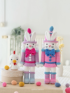 Please note that this is a crochet patter (PDF file), not the actual toys. The file will be available for download immediately after purchase. This crochet pattern contains a detailed description of how to create RABBIT NUTCRACKER with chick with a great amount of step-by-step photos and a list of necessary materials.