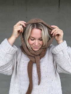 The Crown Hood Scarf is a beautifully modern hooded scarf featuring a soft, cozy hood with an eye-catching yet beginner-friendly cable running from the crown to the nape. Clean i-cord edges give the design a polished look, worked seamlessly as you knit from the top down. Beginning with the crown cable, the piece is knitted flat to the neckline and then into the tapered scarf section, shaped with gentle decreases for an elegant, refined finish. A stylish and functional accessory for cold-weather layering.