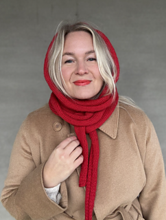 The Crown Hood Scarf features a soft knitted hood adorned with a striking yet easy cable pattern that runs gracefully from the crown of the head all the way down to the nape. Otherwise, the hooded scarf is elegantly simple, with clean i-cord edges that are worked seamlessly as you knit from the top down. This beautiful accessory is knitted starting from the crown cable, continuing flat down to the back of the neck and then into the scarf section, which is shaped with gentle decreases for a refined finish.