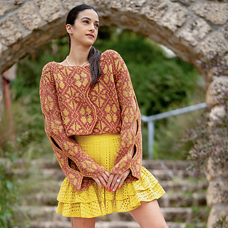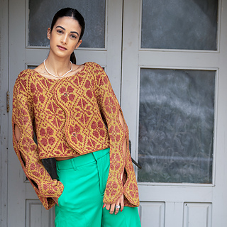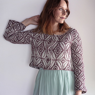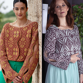 The original floral motif, published in Vogue Knitting (Fall 2020) as the winning design in the color category in Shirley Paden’s DAL 6 competition, and a new psychedelic chart — a modern, geometric interpretation developed especially for this release.