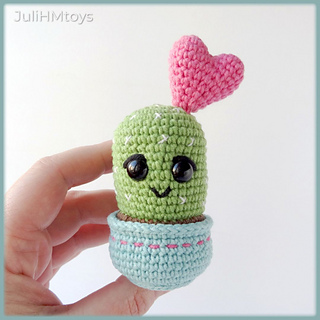 Bring cozy love vibes to your makes with this Cute Cactus with Heart Crochet Pattern PDF! This sweet amigurumi features a smiling cactus face, tiny embroidered details, and a heart topper - perfect for Valentine’s gifts, desk decor, shelf styling, or handmade presents. Designed for all skill levels, the pattern includes easy step-by-step instructions and helpful photos for a calm, enjoyable crocheting process.