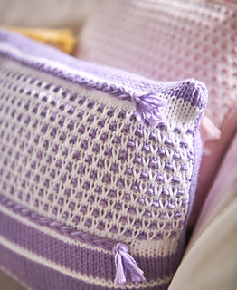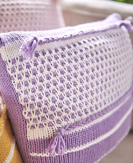The back and front of each pillow are worked flat. When slipping stitches, take care not to pull floats tightly along the wrong side of your work. Keep both colors attached throughout the Pillow. Carry the unused strand loosely up the side of your work.