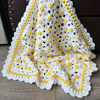 Crochet Pattern & Video, Daisy Lace Flower Blanket Throw, Floral Cottagecore Afghan, Bohemian Home Decor