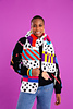 This bold scarf design is inspired by some of the designer’s favourite things from the ’90s: Matthew Williamson’s debut fashion collection, called Electric Angels, and her Dalmatian print school bag.