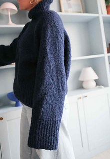 Lovely and soft sweater in BonBon brushed alpaca. Classic design knitted from the bottom up with wide sleeves and a high neck. Sleeves are knitted separately, then placed on the needle together with the body and the raglan dec is made.