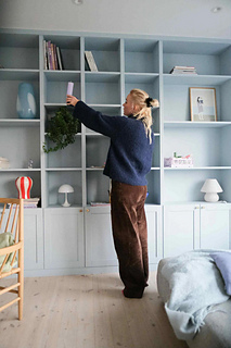 The sweater is intended to be roomy, about + 20 cm range of motion over the stomach. This means that you choose a size that is + 15-25 cm more than what you yourself measure over the stomach (or widest point of the upper body). The sweater is A-shaped and narrows upwards towards the chest and is about 10 cm narrower over the chest than over the stomach.