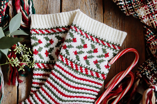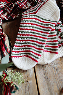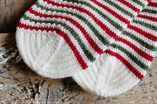 My latest Christmas design, uses the traditional colors of red, white and green. There is a little bit of colorwork, stripes and texture to keep things interesting. The sock pattern is written for magic loop and cuff down. The pattern uses a traditional heel flap but a bottom sole gusset so the set up is a bit different but once you get the hang of it, you might find you will like the bottom gusset since it cups the heel very nicely.