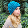 This pretty textured hat with folded up ribbed brim is crocheted in rows from side to side, with the brim, the body of the hat and the top crown part made all in one piece.