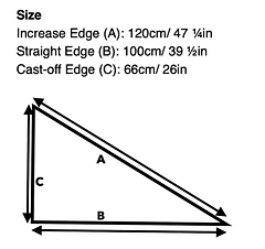 The shawl is knitted lengthways in one piece as a wide right-angled triangle shape. After set-up, this shawl shape is formed by increasing 1 st at the end of every RS row. The main stitches used in the shawl are k (knit); p (purl); m1 (make 1 st by working into the bar between stitches).