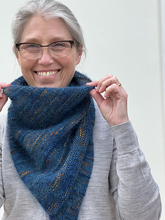 This versatile asymmetric shawl features two contrasting yarns which are held together throughout the shawl to make a soft, blended knitted fabric.