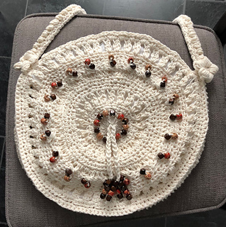 This is a pattern for a purse with matching belt. Bag is 11 inches across not including shoulder strap and belt is 1 1/4 inches wide.