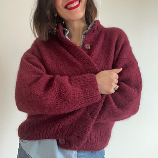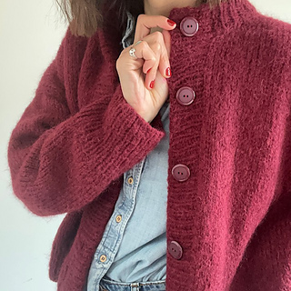 To be worn with 20 – 30 cm / 7 ¾ - 11 ¾ inches of positive ease. To choose which size to fit, measure your chest circumference, add recommended or desired ease and knit the corresponding size in chest circumference (fullest point). (I wear size 3 with 32 cm / 12 ½ inches positive ease).
