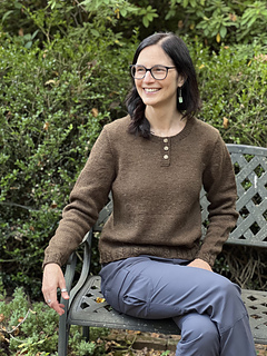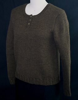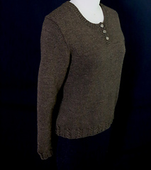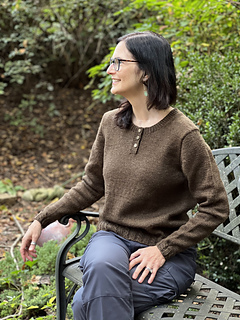 I wanted to create a sweater using a tailored shoulder as I like the fit of these garments, and this construction is unusual. My objective was a timeless, comfortable—and a bit rugged—design. I wanted it to be warm but not super bulky. And finally, I love buttons, so a henley front placket seemed perfect.