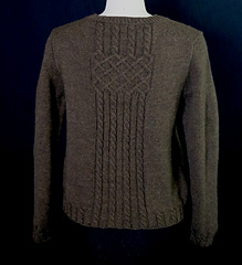 Desmond is an oversized sweatshirt-like henley to keep you warm on chilly evenings. The cable down the back adds style to the garment and interest to the knitting!