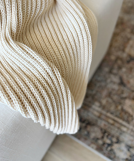 The Devwe Throw offers a gentle, flexible drape and a fully reversible fabric with knit-like ribbing. Its clean, straightforward design makes it a great fit for crocheters at any skill level.